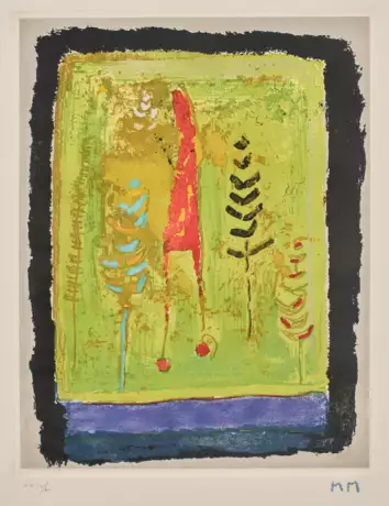 etching with aquatint in colors, on Rives paper, 1979, signed on the reverse, numbered 'XXIV/L' (from the edition of 50 in Roman numerals, there was also an edition of 100 plus twenty artist's proofs), signed in blue pencil, with the declaration of authenticity ink stamp and signature in pencil by the artist's wife on the reverse, published by ZWR, London, 1980, with full margins, framed