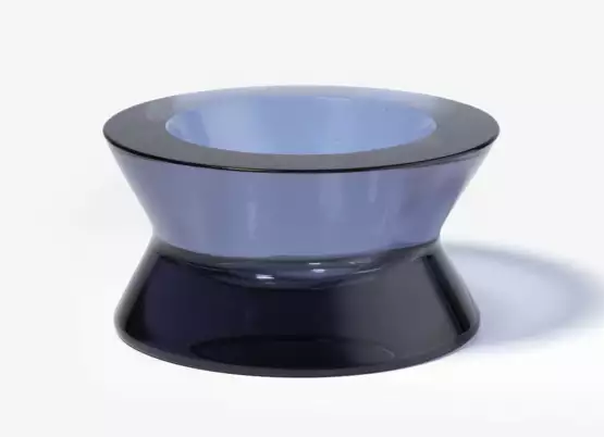 Entwurf um 1970. Farbloses, dickwandiges Glas mit petrolfarbenem Überfang. Im Stand signiert "A. Seguso" (graviert). D 19,5 cm, H 10,5 cm.