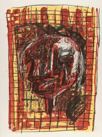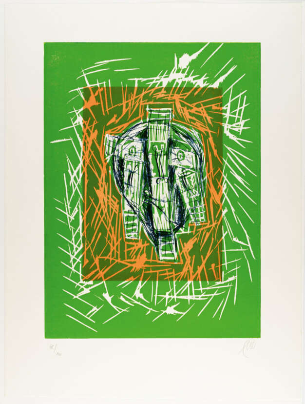 Farbige Radierung, Holzschnitt und Lithografie auf Velin. (1996). Ca. 75,5 x 55,5 cm (Blattgröße ca. 101 x 76 cm). Eines von 100 nummerierten Exemplaren. Monogrammiert unten rechts.