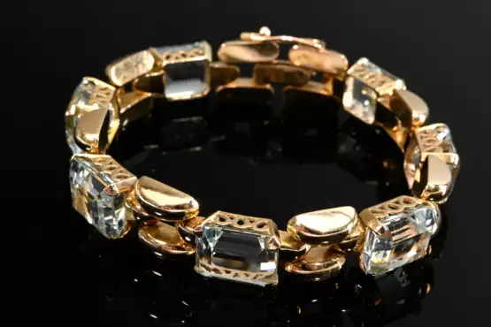 Mid-century 750 rose gold bracelet with aquamarine carrés (approx. 40.8 ct in total), 28.1 g, length 18 cm
