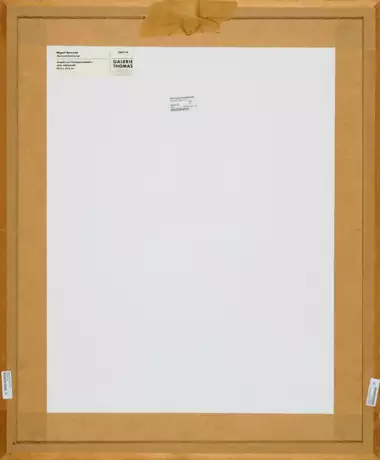 Due to the manufacturing process slighty creased. Minimally discoloured. Traces of the creation process. Occasional minimal tears at the edges. Minimal traces of glue in the lower left margin. Occasional minimal stains. Verso mounted. Otherwise in good condition. The work was not unframed for the catalogue description.