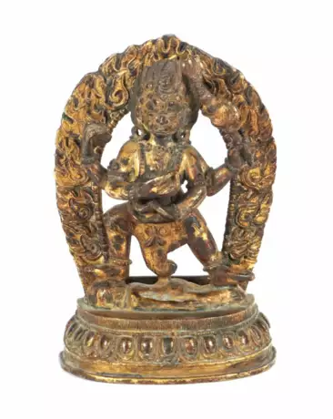 Lot 2689 | Miniatur des Black Jambala Tibet, 18. Jh., Bronze, vergoldet, mit eing…
