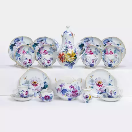 Lot 640 | Modernes Kaffeeservice 'Blau-Bunte Blume' für 6 Personen.