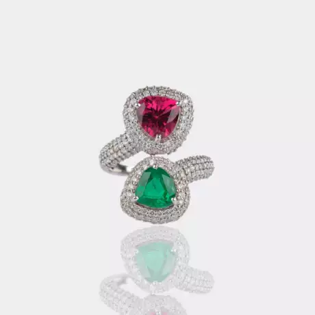 Lot 218 | Moi-et-Toi Smaragd Rubellit Ring mit Brillanten.