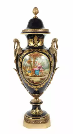 Lot 1103 | Monumentale Prunk-Deckelvase 20. Jh., wohl Frankreich, Porzellan, koba…