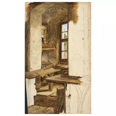 Signed and dated 1849 lower left. Oil study over pencil on thin cardboard. 25.5 x 15 cm. Framed (38 x 27 cm).