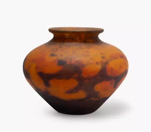 Lunéville, um 1925. Farbloses Glas mit mehrfarbigen Pulvereinschmelzungen. An der Wandung signiert "MULLER FRES, LUNÉVILLE" (blankgeätzt). H 20 cm.