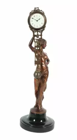 Lot 1206 | Mysterieuse-Pendeluhr mit Jugendstil-Dame 20. Jh., Emailleziffernblatt…