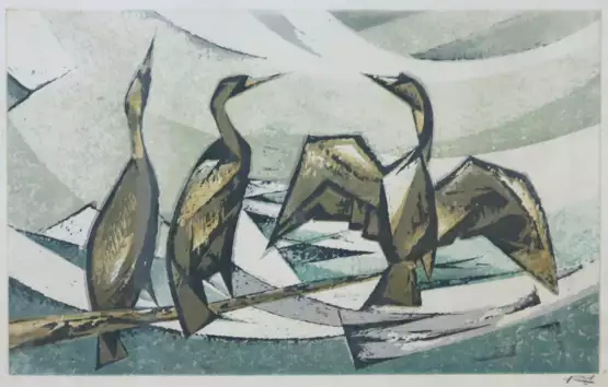 (1928-2014). Farbradierung, unten rechts signiert (ric). Ca. 49 x 80 cm. - Dekoratives Bll.