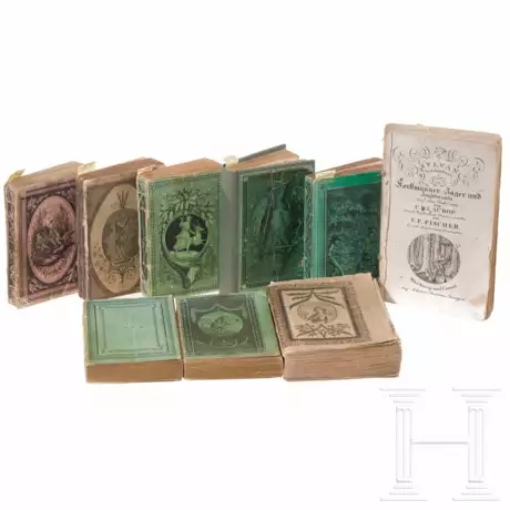 Acht Taschenbücher und ein gebundenes Büchlein, davon sieben Exemplare mit vergoldetem Buchschnitt. Jeweils mit größtenteils kolorierten Kupfern der einheimischen Flora und Fauna. Die Ausgaben stammen überwiegend aus den Jahren 1794 bis 1803, eine spätere datiert auf 1819. Leicht berieben. Maße ca. 10 x 7,5 cm - 15 x 9,5 cm.