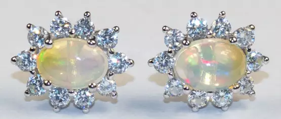 Lot 803 | Ohrstecker, 925er Silber, rhodiniert, echte Opale und brillante Zirkonia, ca. 1,2 x 1,0 cm