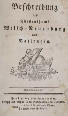 (= Slg. kurzer Reisebeschreibungen, erster überzähliger Bd.). - Erstmals 1766 erschienen. Durch den Übers. Bernoulli erweiterte Beschreibung der preussischen Exklave Neuchatel in der Schweiz, die große Karte zeigt das Gebiet mit Vallengin. - Gebräunt u. fleckig, Taf. mit kl. Einriss.