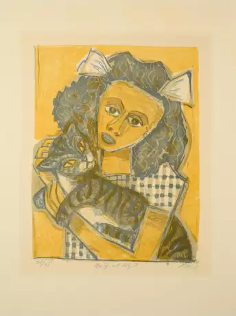 Title: Mädchen mit Katze II (Kopf schräg).