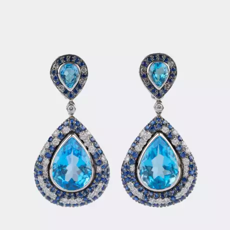 Lot 154 | Paar außergewöhnlicher Topas Ohrhänger mit Saphiren und Brillanten.