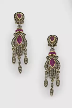 Lot 1036 | Paar Belle Epoque Rubin-Ohrgehänge