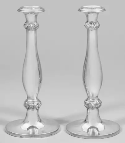 A pair of Vienna silver candlesticks by Carl Isak (active since 1832). Monogrammed. Minor dents. Standard mark 13 lot, city and master´s mark.