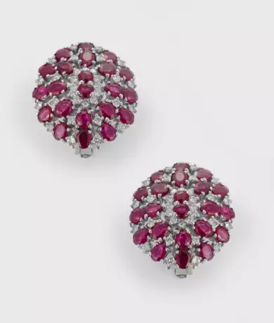 Lot 943 | Paar glamouröse Burma-Rubin-Brillant-Ohrclips