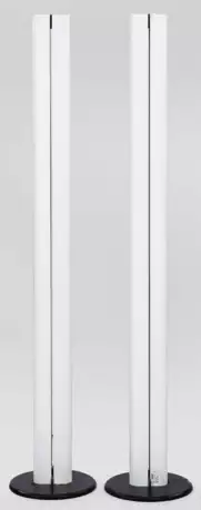 1-flg.; Metall, weiß lackiert und schwarzer Kunststoff. Über flachem Rundsockel gestreckter, abgerundeter Korpus mit senkrechten Leuchtschlitzen. Entw. G. F. Frattini, 1979. Herstellerzeichen. Elektrifiziert. H. 182 cm.