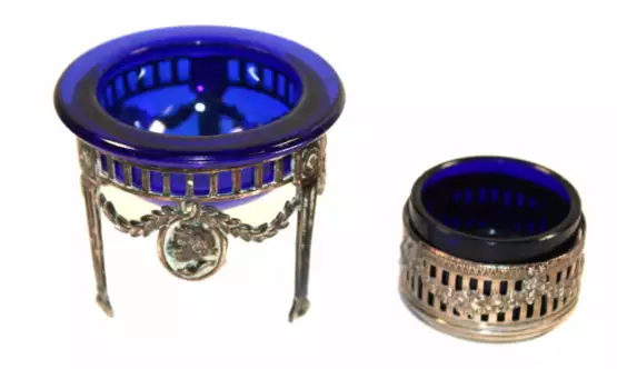 Silber mit kobaltblauem Glaseinsatz. Fein dekorativ. Holland um 1900.