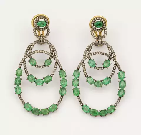 Lot 910 | Paar Smaragd-Ohrgehänge