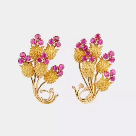 Lot 42 | Paar Vintage Rubin Blüten-Ohrringe.