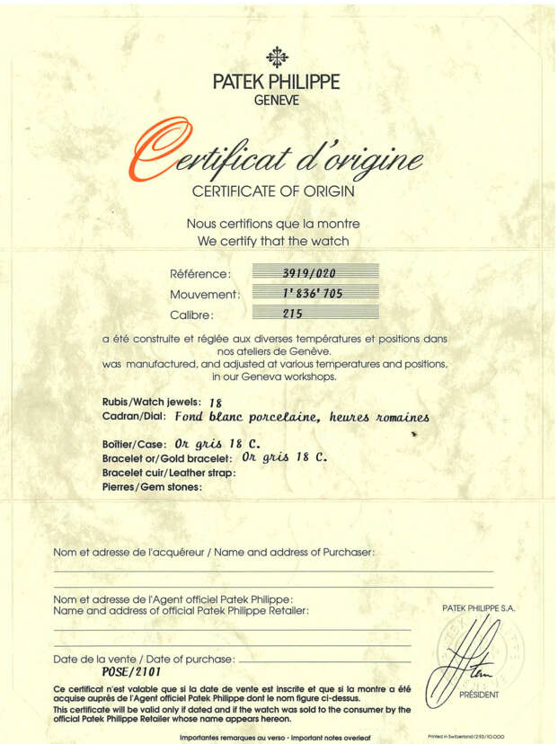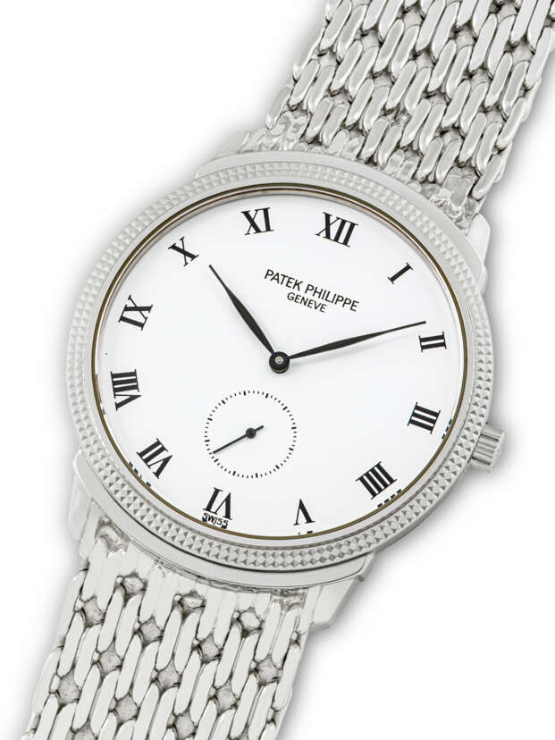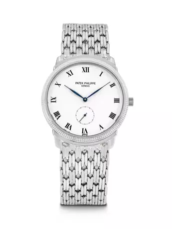With: 18k white gold Patek Philippe bracelet, approximate wrist size 170 mm., undated Patek Philippe Certificate of Origin, sales tag, presentation box and outer packaging