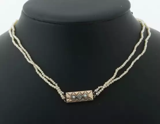 Lot 1359 | Perlencollier 20. Jhr., 2 reihiges Collier mit Perlen im Verlauf, Vers…