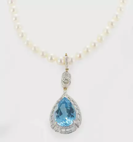 Lot 1232 | Perlenkette mit prachtvollem Topasanhänger