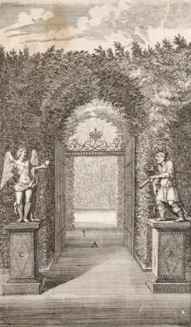 Graesse IV, 48. Fabula docet No. 81. Nicht bei Thieme-Becker u. Ornamentstichkat. Berlin. - Deutsch-franz. Ausgabe der 1677 in Paris ersch. Beschreibung des Versailler Labyrinths von Charles Perrault. Hübsche Kupferfolge mit Darstellungen von 39 originellen Tierbrunnen des Labyrinthgartens (plus Eingang), deren Motive der Gartenarchitekt A. Le Notre den aesopischen Fabeln entlehnt hatte. "Charles Perrault konzipierte seine Labyrinth-Beschreibung als 'Führer' durch eine sehenswerte Gartenarchitektur, weniger als Verherrlichung der königlichen Pracht am Hof des Sonnenkönigs. Sein Buch, das auch die Fabelepigramme Benserades enthielt, hatte er mit Kupferstichen von Sebastien Le Clerc illustrieren lassen. Johann Ulrich Kraus, der sich auch in anderen Werken gerne am stilistischen Vorbild Le Clercs orientierte, stach die Illustrationen des Franzosen in Seitenverkehrung sehr genau nach und ließ den Text Perraults von Andreas Müller für den "Ergoetzlichkeit-Liebenden Leser" übersetzen" (Fabula docet). - Stockfleckig. Druck- u. Kupfertitel lose u. beschäd.