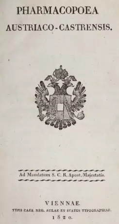 Vgl. Schelenz 569, Blake 347 u. Wellcome IV 356. Dritte lat. Ausg. (erstmals 1795 ersch.). - Das erste offizielle, militärische Arzneibuch der Habsburger Monarchie. - Gering braunfl., Ebd. etw. berieb. u. best.