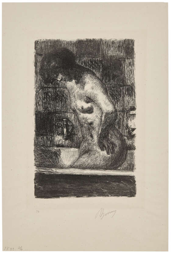Including: Jeune femme aux bas noirs, lithograph, on wove paper, 1893, signed in pencil, numbered 'No 66' (from the edition of 100); La coupe et le compotier, from Maîtres et petits maîtres d'aujourd'hui, lithograph, on wove paper, 1925, Bouvet's third (final) state, signed in pencil, numbered 82/100, published by Edmond Frapier, Galerie des Peintres Voyageurs, with their blindstamp; together with Femme debout dans sa baignoire, from Maîtres et petits maîtres d'aujourd'hui, lithograph, on Chine laid paper, 1925, Bouvet's third state (of four), signed in pencil, numbered 4/25 (from the deluxe edition of the third state), published by Edmond Frapier, Galerie des Peintres Voyageurs, Paris, with their blindstamp, each with wide margins, in generally good condition