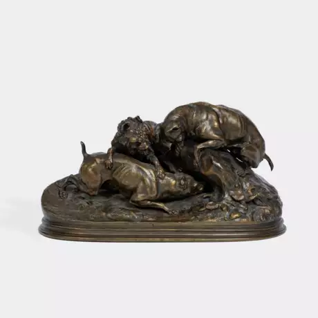 Lot 585 | Pierre-Jules Mène (Paris 1810 - Paris 1879). 'Chiens au terrier'.