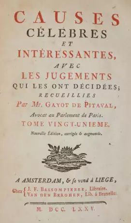 Vgl. Graesse V, 306; Hayn-G. VI, 207. - Berühmte Sammlung von Kriminalfällen, ab Band 23 von J. C. de la Ville unter dem Titel "Continuation des causes célebres" herausgegeben. Pitaval schildert den Prozessverlauf der Fälle und berücksichtigt in seiner Darstellung auch die psychologischen und menschlichen Aspekte eines jeden Falles. Er wurde damit zum Begründer der modernen Gerichtsberichterstattung. - Es fehlen die Bände 1, 14 und 25. Stärkere Gebrauchssp.