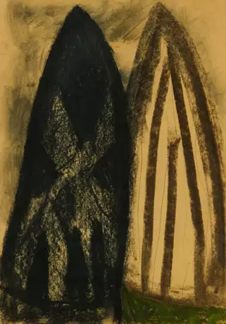 Slightly discoloured. Traces of the creation process. Slightly wavy due to the manufacturing process. Minimal bumpings at the edges. Verso mounted. Otherwise in good condition. The work was not unframed for the catalogue description.
