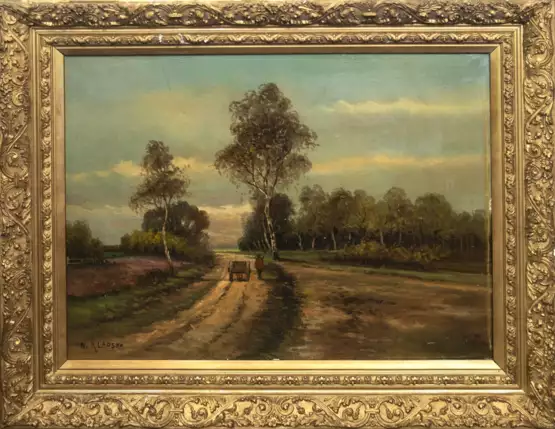 Lot 78 | "Feldweg mit Fuhrwerk", Öl/ Lw, undeutl. sign. u.l. "N. Klarsen?", 60x80 cm, Rahmen