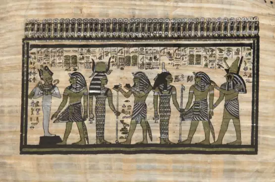 Lot 252 | "Szenen aus der Ägyptischen Geschichte", Papyrusmalerei, 30x39,5 cm, hinter Glas und Rahmen