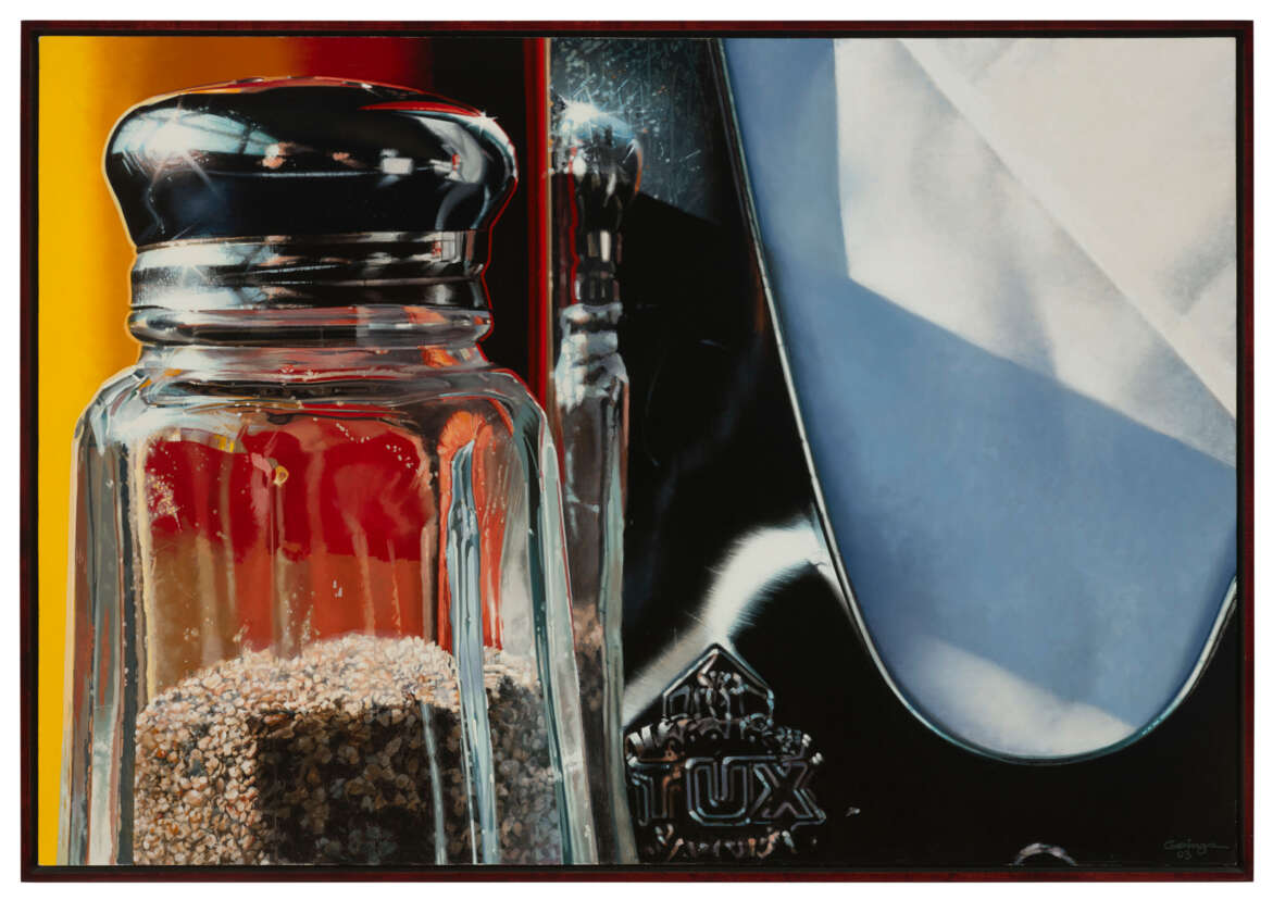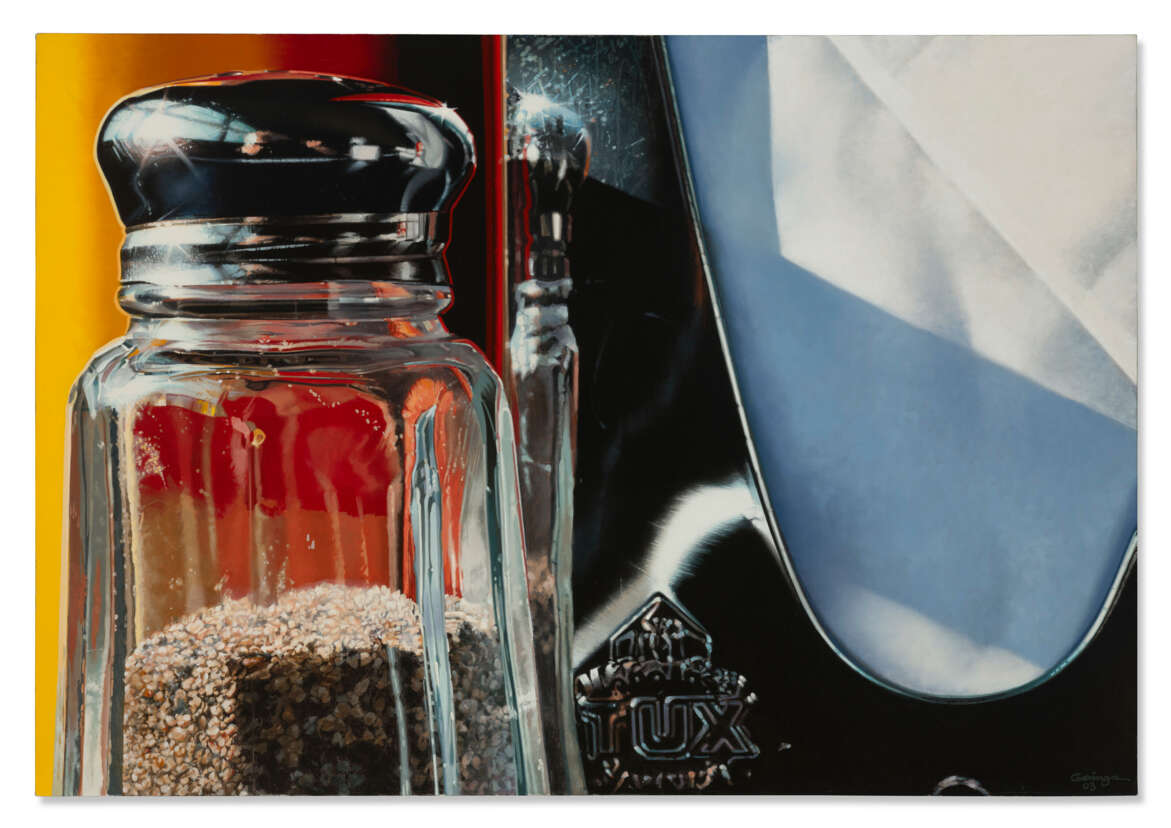 signed and dated 'Goings 03' (lower right); signed again, titled and dated again 'Ralph Goings 2000-03 'TUX'' (on the reverse)