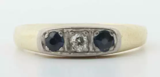 Ring 20. Jhr. Gelbgold 585, punziert, besetzt mit Altschliffdiamant ca. 0,10 ct, und 2 Saphiren zs ca. 0,25 ct, ca. 3,4 g, RG 50. Tragespuren.