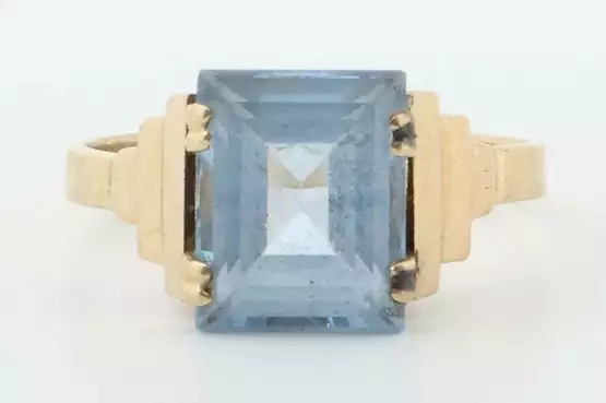 Ring 20. Jhr., Gelbgold 750, besetzt mit blauem Stein, säuregeprüft, ca. 3,4 g, RG 55. Tragespuren.