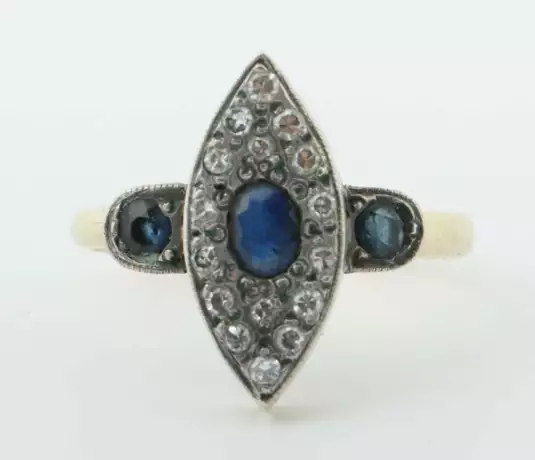Lot 1343 | Ring mit Diamanten/Saphiren 20. Jhr., Schiffchenring besetzt mit 16 Di…