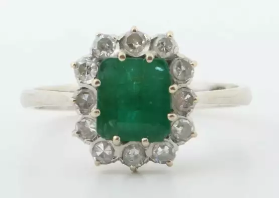 Lot 1371 | Ring mit Smaragd 20. Jhr., Weißgold 750, besetzt mit Smaragd, umrandet…