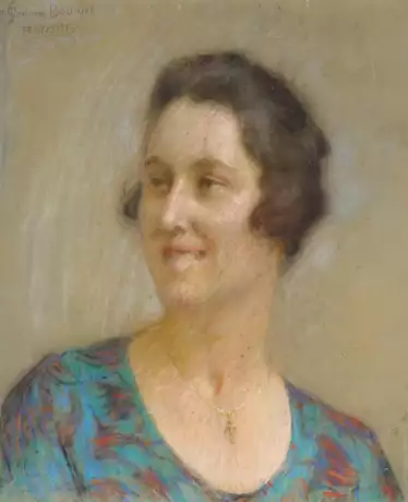 ╔Dabei: Ders. Atelier.╗ Portrait eines jungen Mannes in schwarzer Jacke vor dunkelrotem Hintergrund. Öl auf Lwd. 1912. 46 x 38 cm. Ob. re. dat. Verso auf Holzrahmen gest. "Vente Atelier J. Ronsin". - Äußere Ränder beschabt. - ╔Ders. Atelier.╗ Sitzende Frau beim Nähen. Öl auf Karton. Ca. 41 x 31 cm. Verso mit Atelier-St. Gerahmt. Zus. 3 Gemäl de.