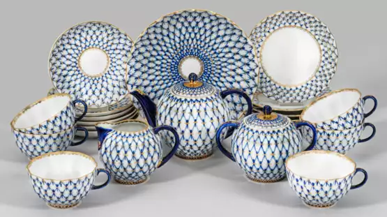 Das 1950 entstandene "Kobaltnetz"-Service wurde dem ersten Service der russischen Zarin Katharina II. nachempfunden.