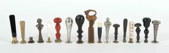 Lot 577 | Sammlung von 17 Petschaften 19. Jh./um 1900, Holz/variierende Metalle/…