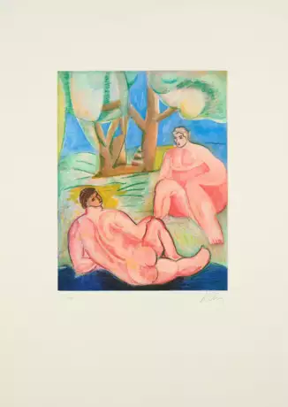 From the portfolio "Meine Kindheit - Schmerz und Heilung", published by Thomapyrin Schmerztabletten and BUNTE in support of the UNICEF program for traumatized children in Rwanda. The portfolio originally contained 10 prints by the artists Georg Baselitz, Sandro Chia, Jörg Immendorf, Markus Lüpertz, Heinz Mack, A.R. Penck, Antoni Tàpies, Rosemarie Trockel and Tom Wesselmann.