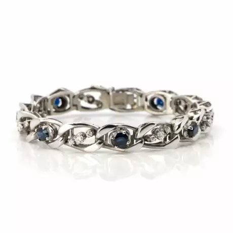 585 white gold, hallmarked, 24 brilliant-cut diamonds, total approx. 0.80 ct, G, VS, 7 oval-cut sapphires, total approx. 3.50 ct, length 18 cm, weight approx. 26.2 g