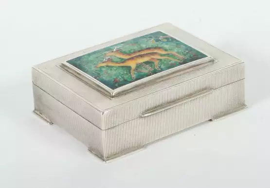 Lot 1590 | Schatulle mit Emaillebild Emil Brenk, Pforzheim, 20. Jh., Silber 925, …