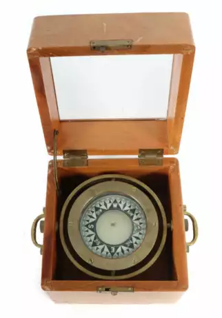 Lot 653 | Schiffs-Kompass ca. 1930/40er Jahre, Messing, kardanischer Flüssigkeit…