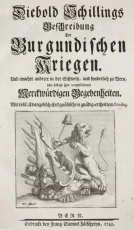 Haller IV, 617. Barth 833. Lonchamp 2651. Brunet V, 202. - Eines der seltenen Exemplare mit den sieben Kupfern, welche Haller zufolge nur "bey einigen Exemplaren" zu finden sind. - Exlibris des Edouard de Turckheim. - Die Tafeln zeigen meist Schlachtenszenen, im Hintergrund mit Ansichten u. a. von Bern und Murten (2). - Die Tafel zu S. 288 innen eingerissen und etw. wasserrandig. S 137/138 mit ausgebessertem Papierschaden im Rand (minim. Buchstabenverlsut). Leicht gebräunt, wenig fleckig, guter Gesamteindruck.
