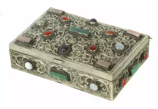 Lot 2656 | Schmuckschatulle Wohl Nepal, 2. Hälfte 20. Jh., Metall, versilbert, di…